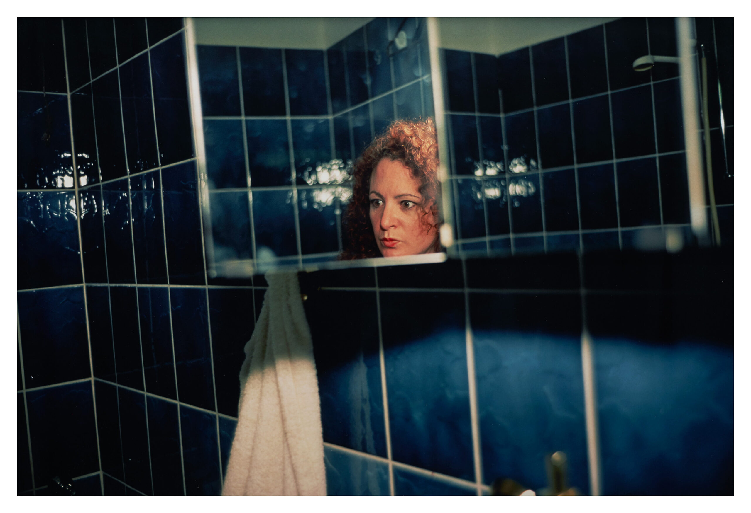 Self-portrait in my blue bathroom, Berlin, 1991 Nan Goldin Technique Cibachrome Dimensions 72 x 102 cm Production Year1991 Share: More from this artist Nan Goldin Joana and Aurele making out, NYC, 1999 Nan Goldin Gilles and Gotscho, Paris, 1991-1993 Nan Goldin Greer and Robert on the bed, NYC, 1983